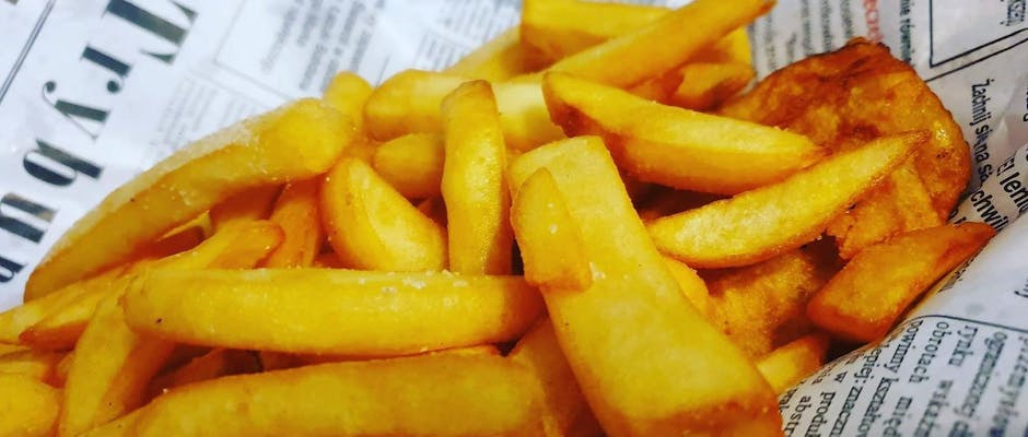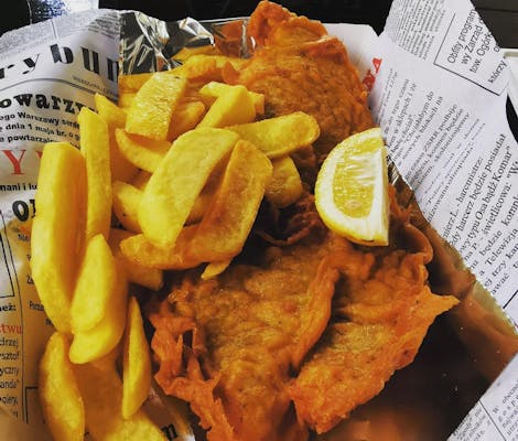 Fish And Chips bardzo często podawane jest na wynos, dawniej tradycyjnie zawijano je w gazetę.